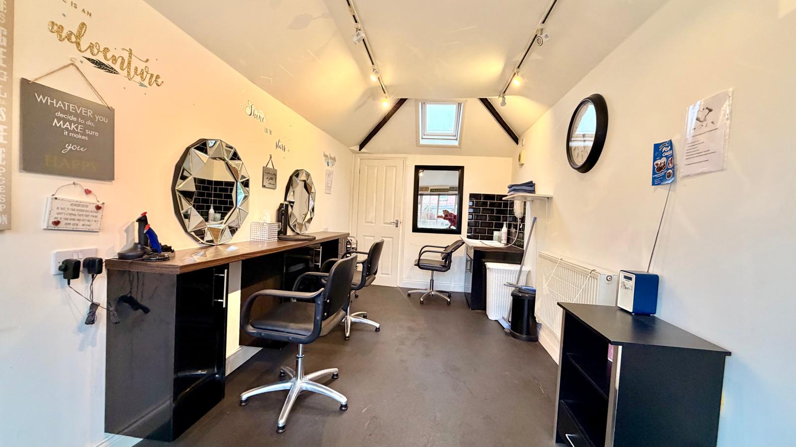 Complete with plumbing and heating. Currently fitted as an operational hair salon, this versatile space is ideal for a home office, business use, hobby studio, teenage accommodation or guest suite, and also offers potential for further development, subject to the necessary consents.