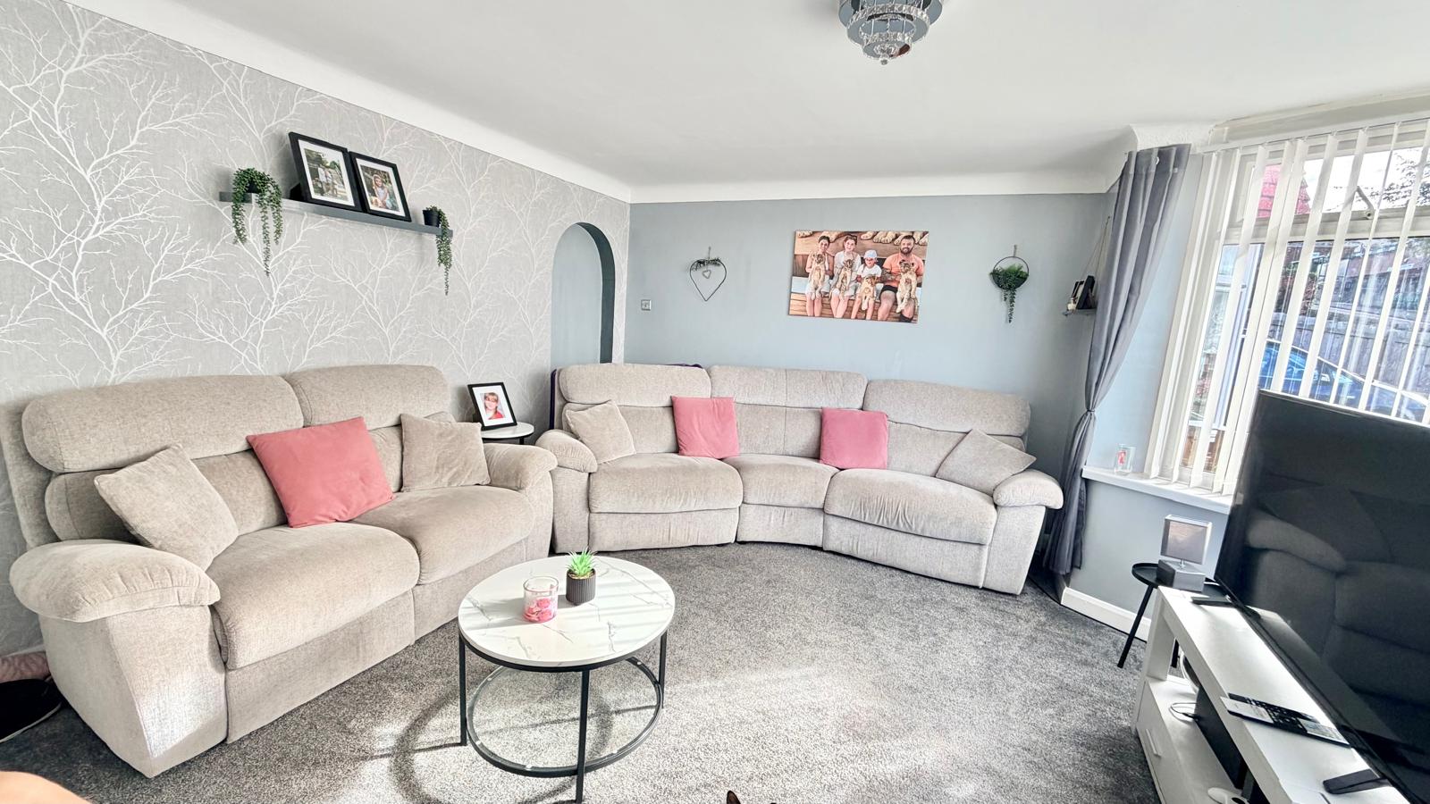 Offering good size family living with two spacious double bedrooms (both with fitted wardrobes) a generous single bedroom, refitted bathroom with shower, a rear open plan spacious kitchen/dining room with bay windowed living room and a most useful rear storage room / playroom to the rear.  Externally the property enjoys an extremely spacious rear garden with front garden and ample side drive parking for a couple of cars.