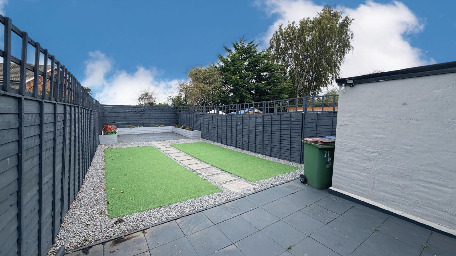 The rear garden is fence enclosed split between a generous paved patio and well tended artificial lawn with centre pathway, well stocked raised borders with shrubs and planting, gravelled borders,   There is a further paved patio area at the bottom of the garden and is an escape in the sunshine, ideal for family and friends.   There is also an attached brick built outhouse with storage.