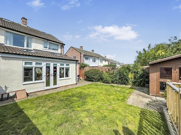 The property boats no onward chain and offers an abundance of versatile accommodation with three reception rooms, front and rear gardens, an attached garage which offers a useful utility room along with a welcome addition of a rear extension offering an open plan family room which leads out into the rear garden, a double sided wood burning stove which heats both the living room and dining room … and pretty much all of the ground floor accommodation. The property also offers a Loft Room via retractable ladder with Velux window, plenty of eaves storage and could easily be converted to an additional bedroom subject to necessary planning permissions.