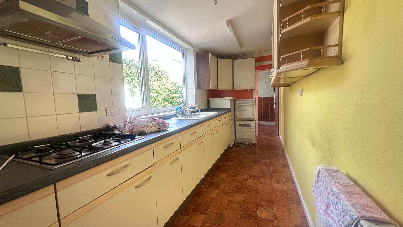 Fitted with a matching range of wall and base units with working surfaces, tiled splashbacks, wall mounted central heating boiler, 4 ring gas hob, fan assisted oven and extractor hood, uPVC window to side aspect, space for fridge freezer, one and a half bowl sink unit, opening through to:-