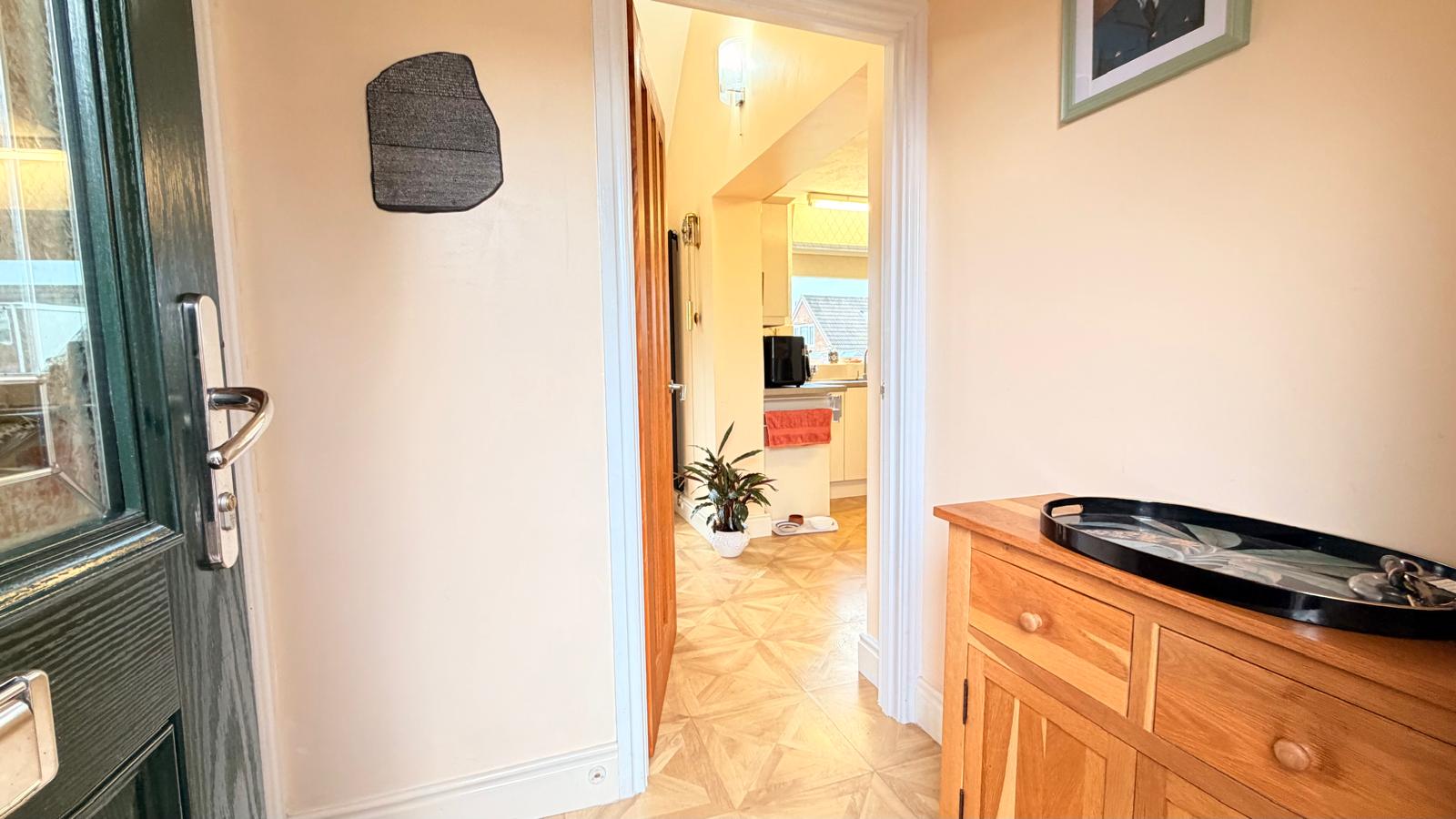 uPVC side entrance door, radiator, Pine turning staircase to first floor with useful under stairs cupboard, further separate storage cupboard, access to all ground floor rooms.