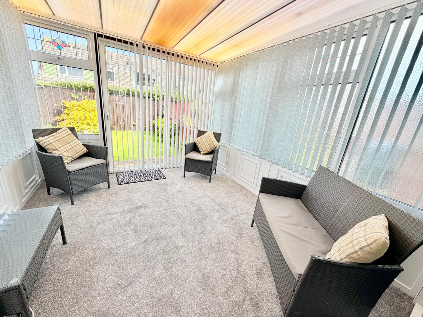 Conservatory 3.30m x 2.90mGlazed windows on three sides with rear access door.