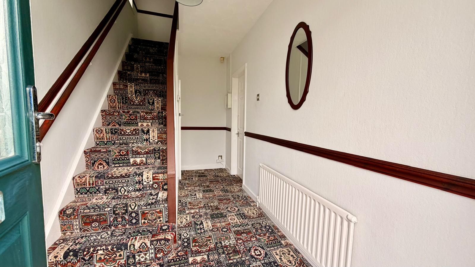 With staircase to first floor, understairs cupboard, uPVC entrance door with side window panel, radiator and access to all ground floor rooms.