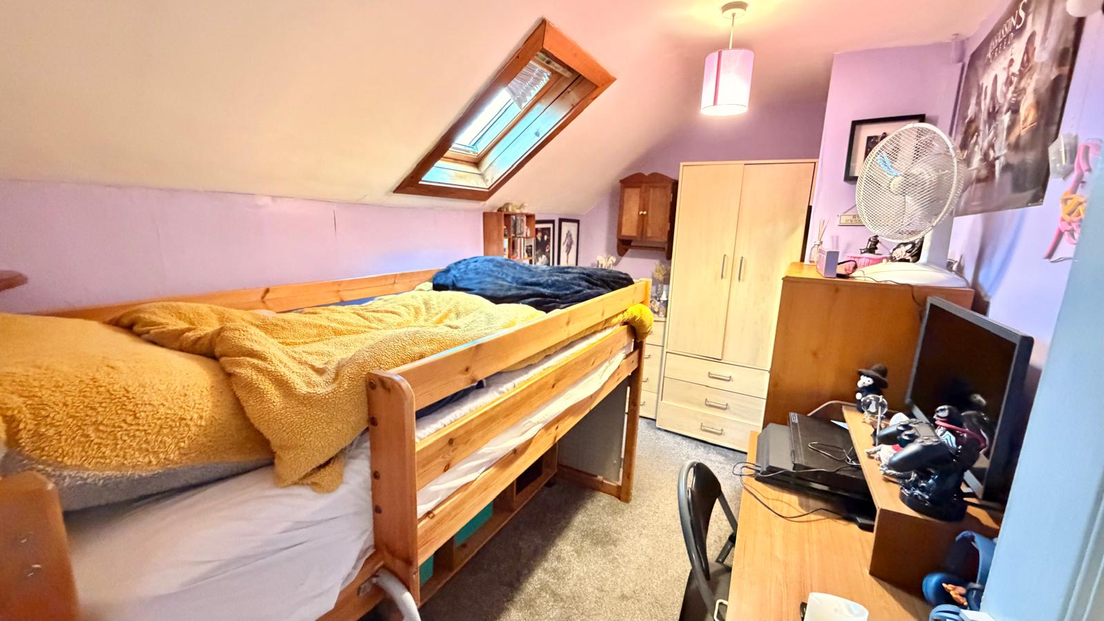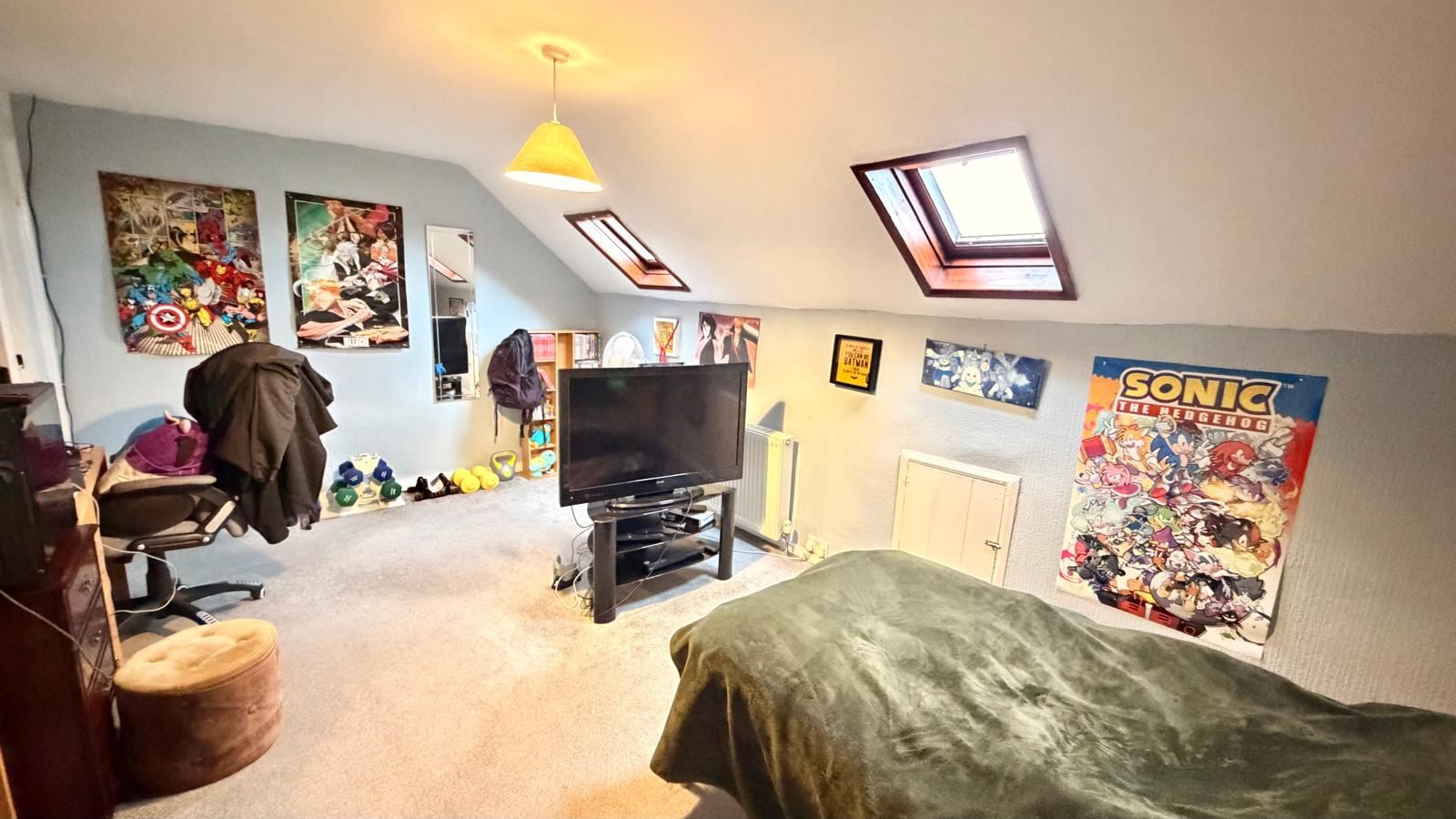 Two Velux windows to the front aspect with elevated views, fitted cupboard and radiator.