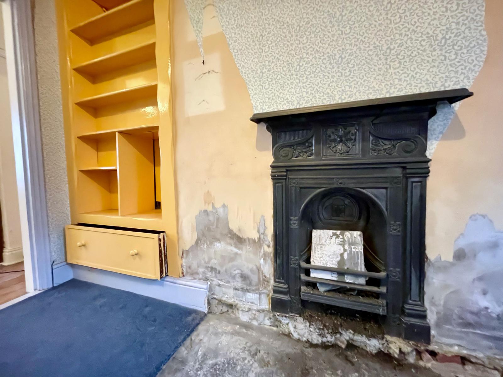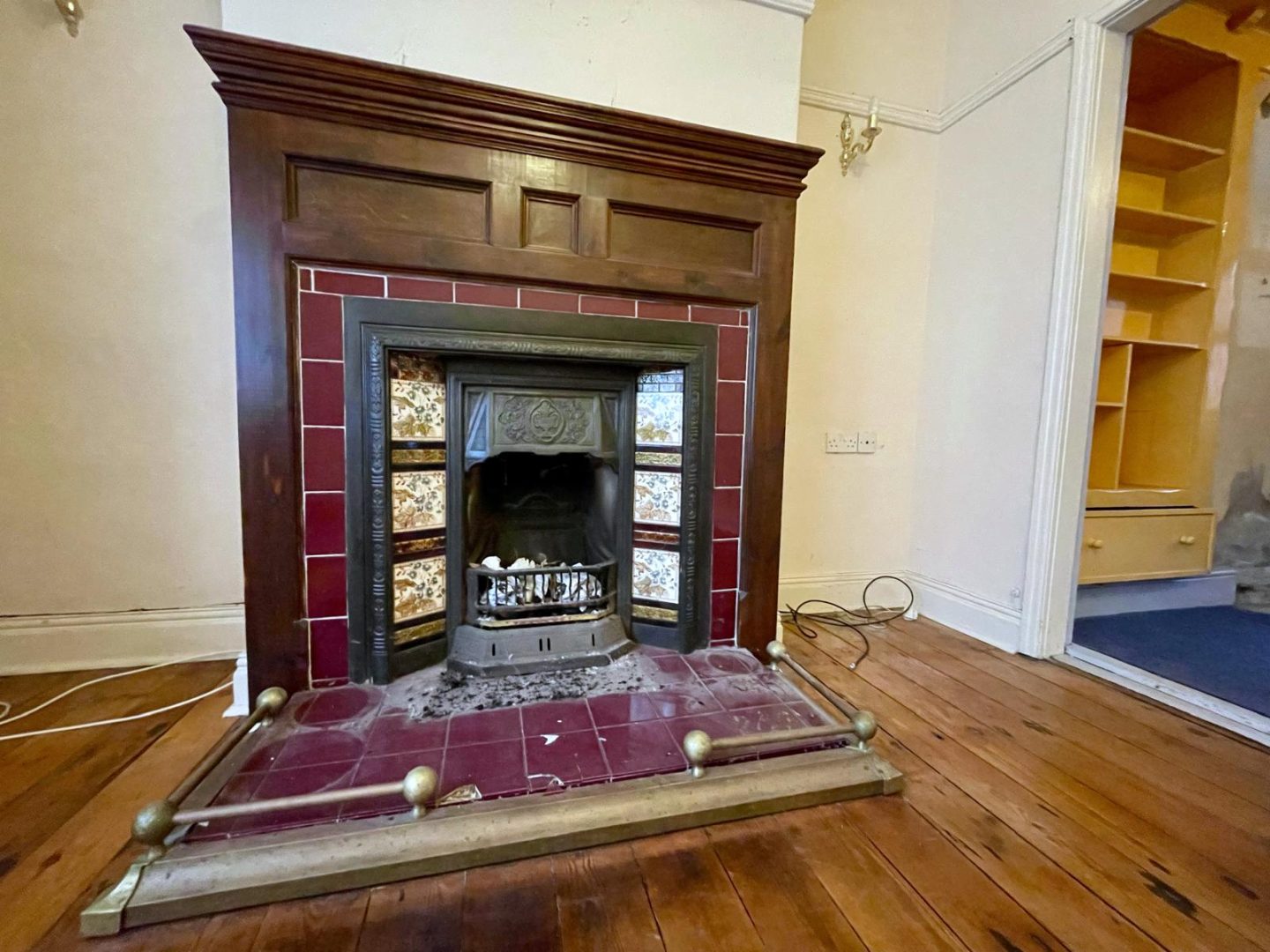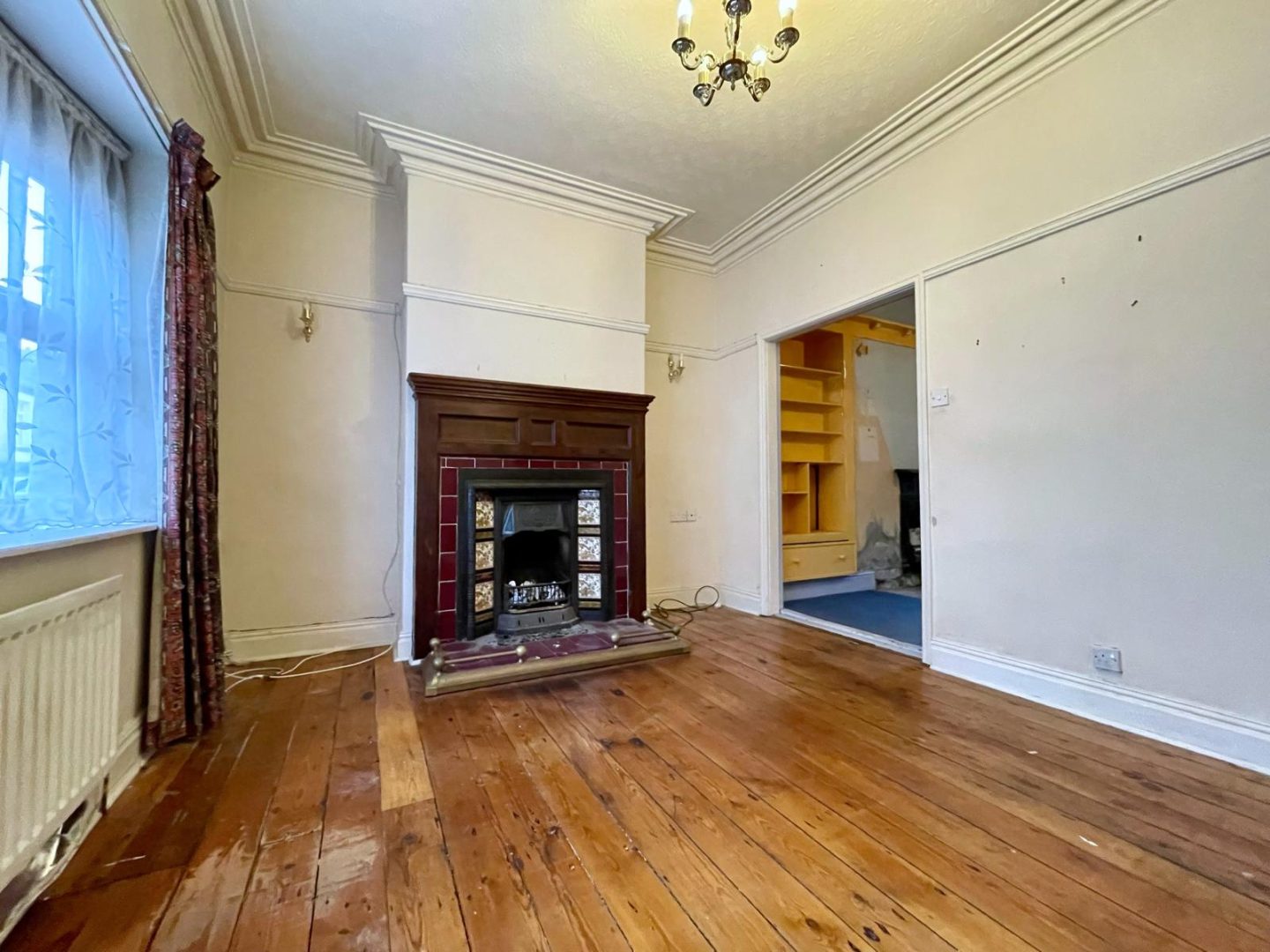 uPVC double glazed bow window to front, radiator, original ceiling coving and ceiling rose, picture rail, exposed wooden flooring and most wonderful cast iron open fire.