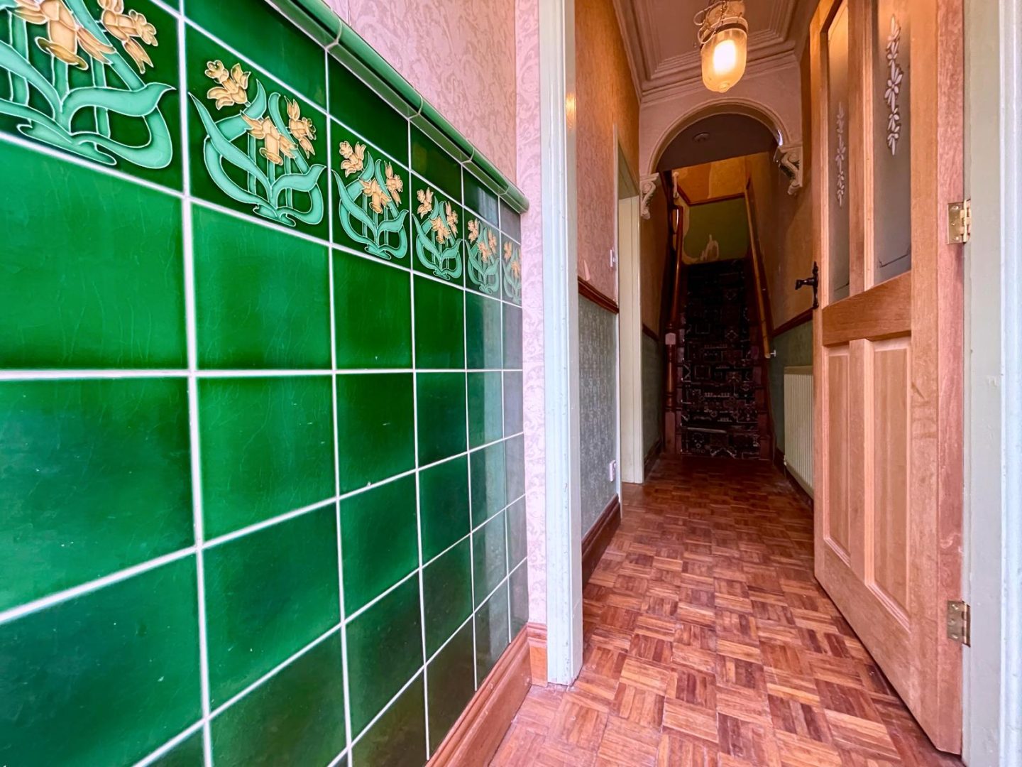 uPVC entrance door to front, half Victorian ceramic tiled walls and feature parquet flooring.