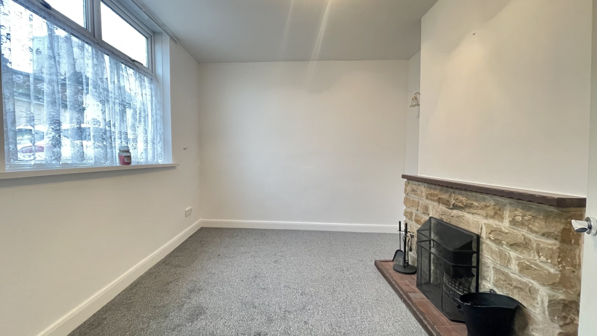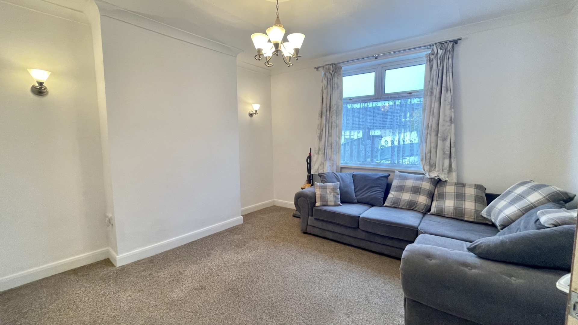 uPVC window to front, 2 wall lights, grey corner sofa if required and door to:-