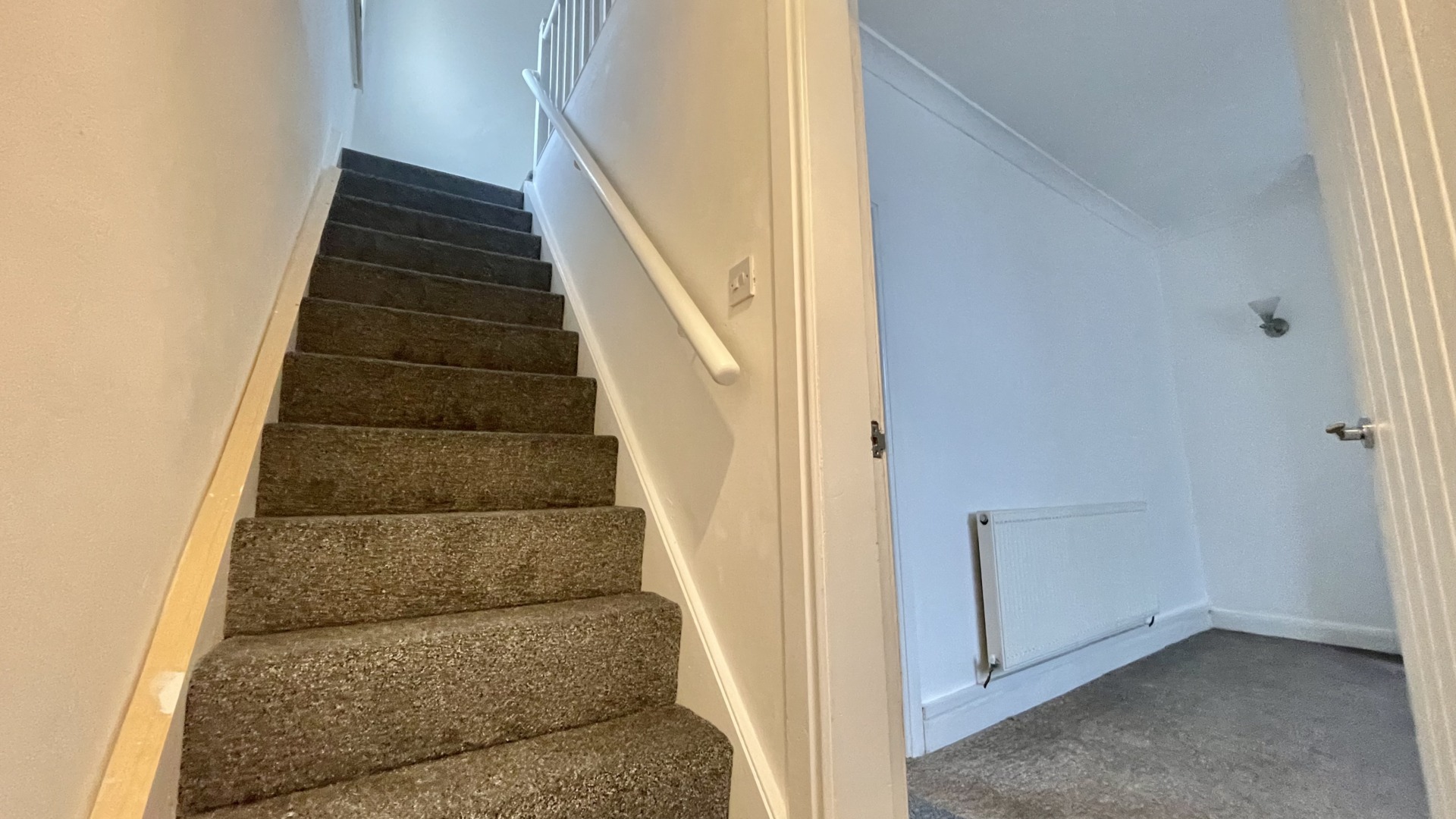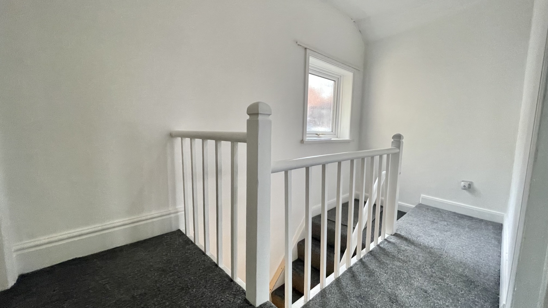 Spacious landing with balustrade staircase and uPVC window to side aspect.